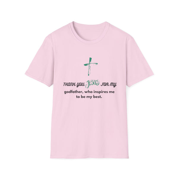 This unisex softstyle t-shirt is perfect for those who value comfort and meaningful expressions. Its lightweight, breathable fabric drapes beautifully on all body types, ensuring a cozy fit all year round. A wonderful gift for godfathers or anyone who plays a significant role in inspiring others, this shirt celebrates deep connections and gratitude. Ideal for casual outings, church events, or family gatherings, it adds a touch of heartfelt sentiment to any occasion. Make it a memorable gift for Christmas, birthdays, or special celebrations to honor those who uplift and inspire you.